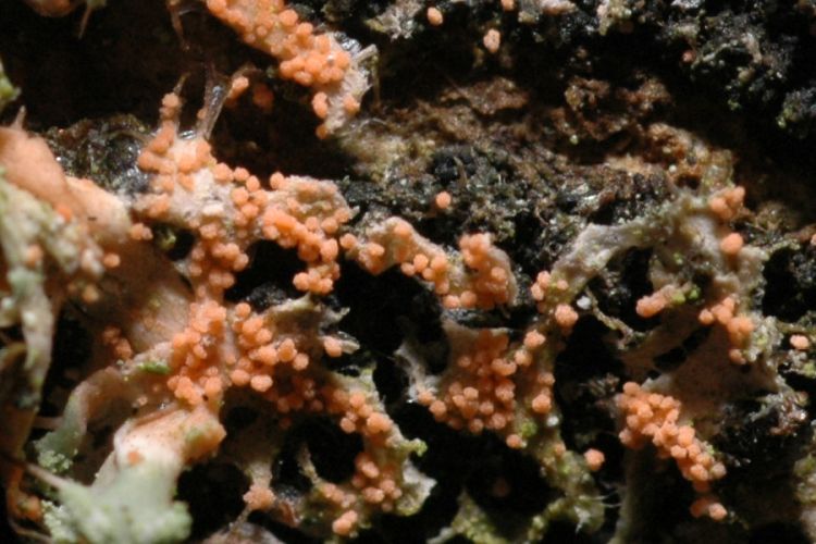 Marchandiomyces corallinus. on Parmelia sulcata.